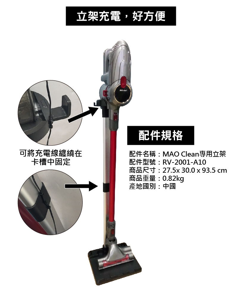 ► 可使吸塵器站立收納